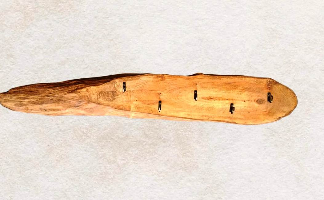 Ovaj zidni čiviluk izrađen je od jedinstvenog komada prirodnog drveta, što svakom predmetu daje jedinstven karakter i šarm.