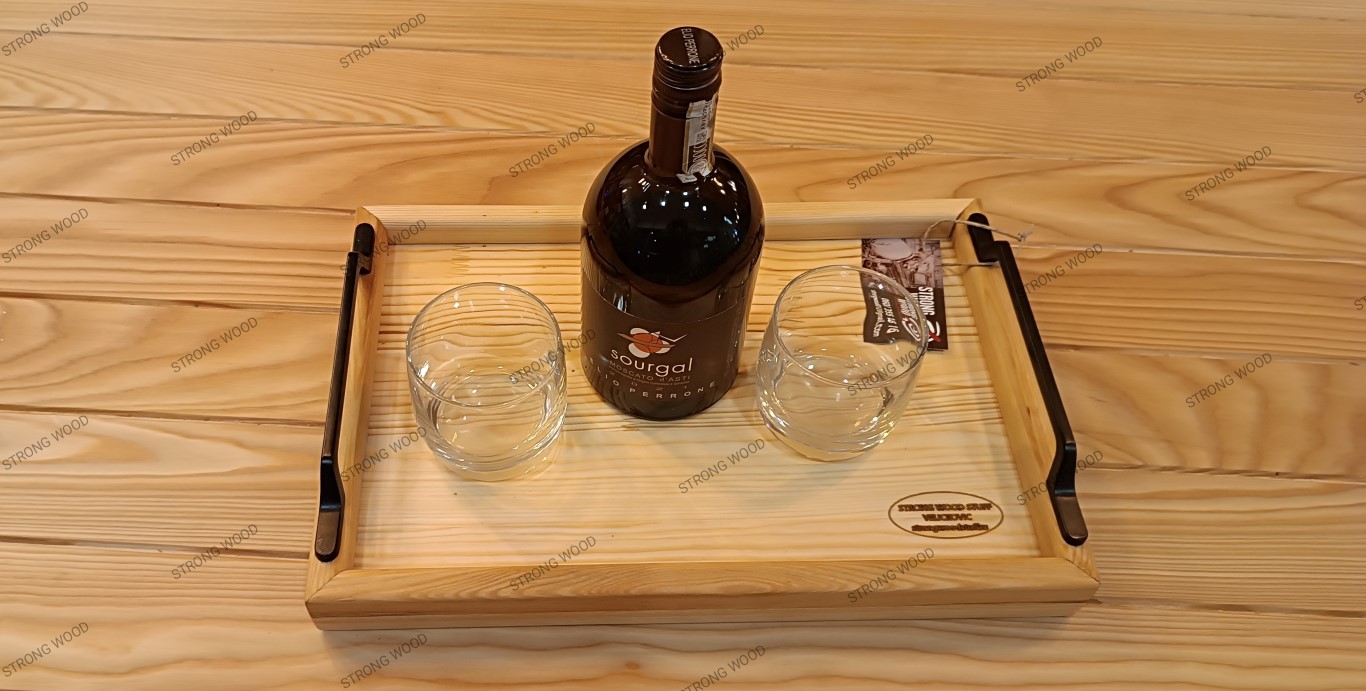 Sibirski ariš, poznat po svojoj izdržljivosti i prefinjenom izgledu, čini osnovu poslužavnika. Metalne crne rucice dodaju dozu modernosti i kontrasta, istovremeno pružajući čvrst i siguran hvat prilikom nošenja. Ove rucice su pažljivo dizajnirane kako bi se uklopile u celokupni estetski dojam poslužavnika.