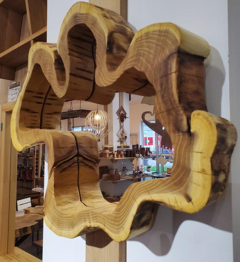 U ponudi unikatno ogledalo napravljeno od masivnog drveta Bagrema sa srednjim delom panja koji je ispunjen ogledalom, što mu daje prirodan i jedinstven izgled. Ovo ogledalo bi moglo biti savršeno za one koji traže neobičan i autentičan komad nameštaja.