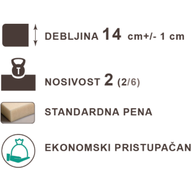 Sačinjena je od sunđera gustine 20 kg/m3 i debljine je 12cm. Kompletna ispuna je lepljena ekološkim lepkom (nije štetan po ljudskozdravlje), koji je proizveden u EU.