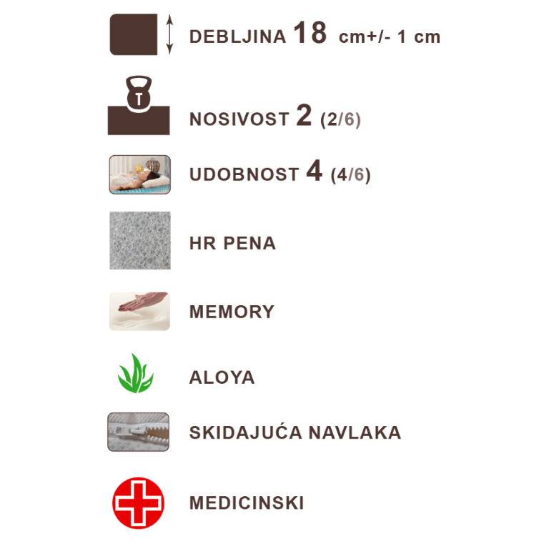 Visina dušeka 18 cm +/- 1cm