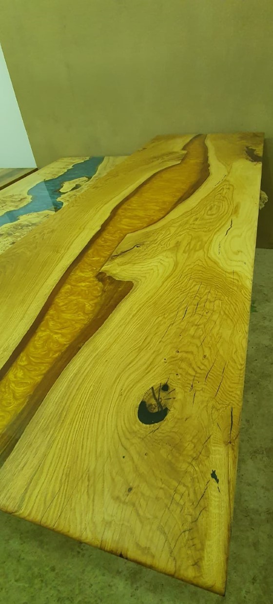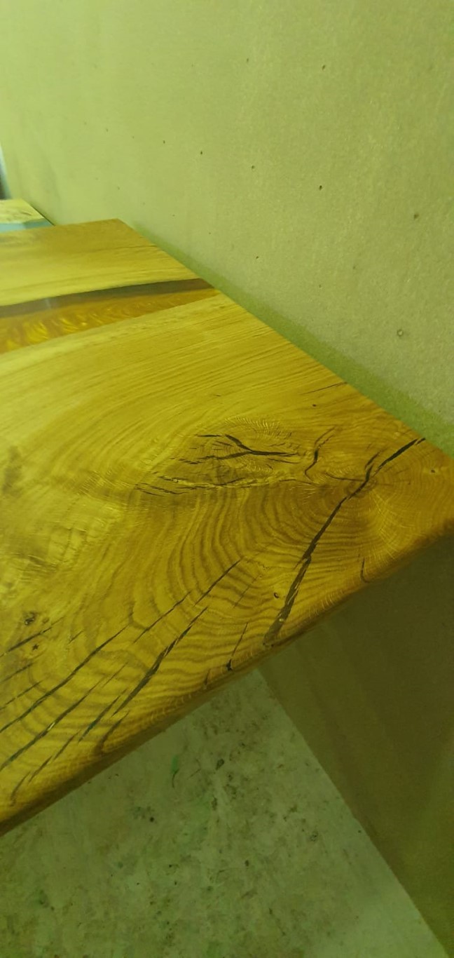 Ploča stola napravljena od drveta hrasta u kombinaciji sa epoxy smolom je remek delo koje će sigurno privući pažnju svakoga ko uđe u prostoriju. Ova jedinstvena kombinacija prirodnog drvenog izgleda i sjaja epoksidne smole pruža nekoliko zapanjujućih karakteristika: