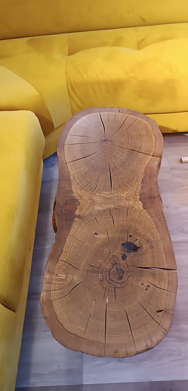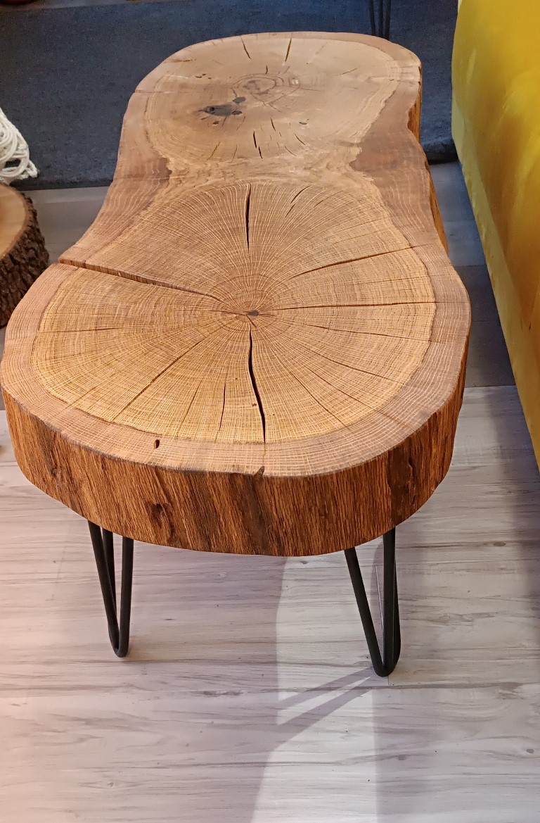 Klub sto od hrastovog panja predstavlja jedinstven i autentičan komad nameštaja, proizveden od panja hrasta starog preko 70 godina. Sa debljinom od 9 cm, sto ima presečni rez dimenzija 45×105 cm, čineći ga robustnim i izdržljivim. Metalne crne noge, koje su dodatno obložene suplastificiranim slojem, pružaju stabilnost i modernu estetiku.
