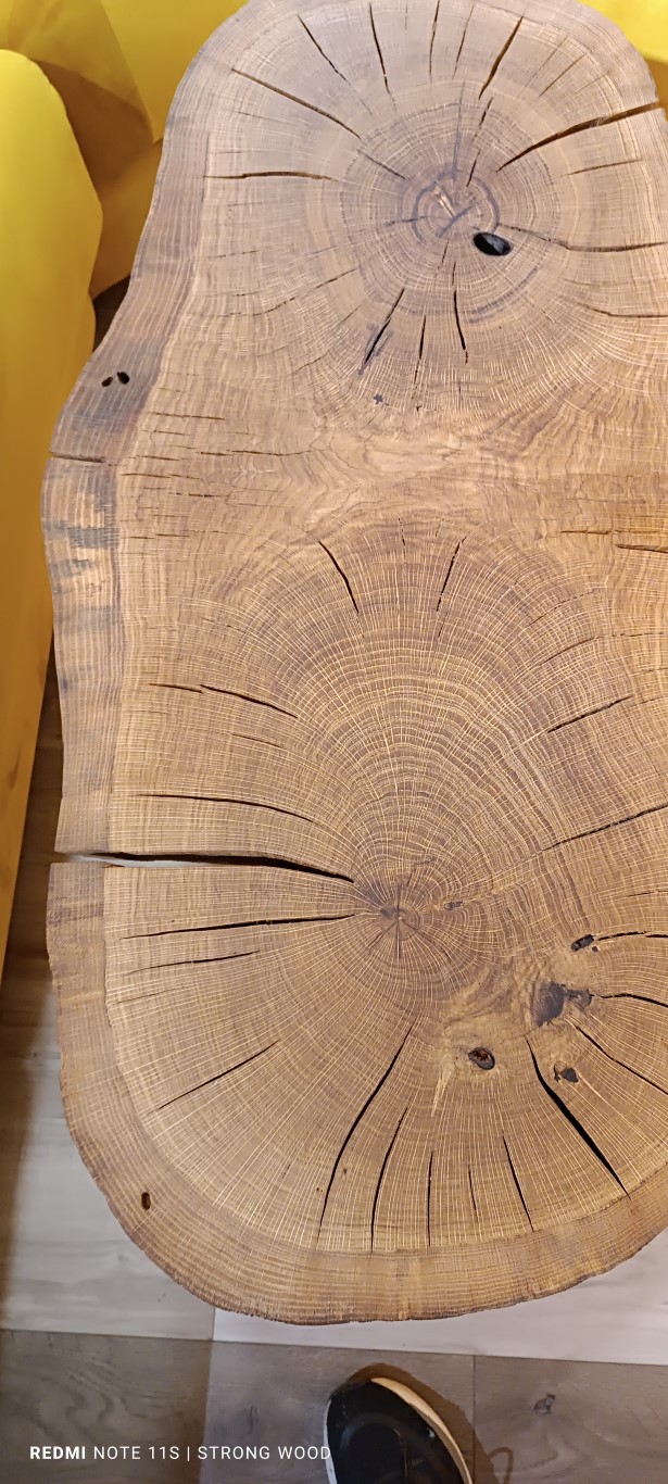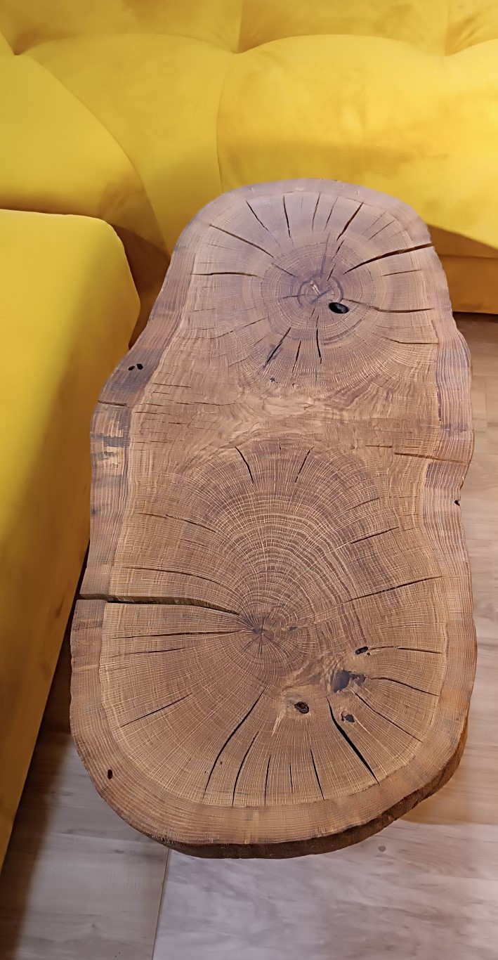 Klub sto od hrastovog panja predstavlja jedinstven i autentičan komad nameštaja, proizveden od panja hrasta starog preko 70 godina. Sa debljinom od 10 cm, sto ima prečni rez dimenzija 48×100 cm, čineći ga robustnim i izdržljivim. Metalne crne noge, koje su dodatno obložene suplastificiranim slojem, pružaju stabilnost i modernu estetiku.