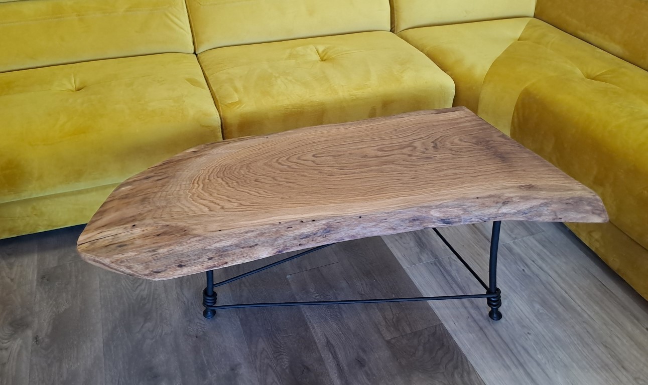 Napravljen od hrasta sa prirodnim ivicama, pukotinama i rupama od crva ili žižka poseduje neponovljivu lepotu koja odražava rustičan šarm i autentičnost prirode. Svaka nepravilnost na površini dasaka doprinosi jedinstvenom karakteru stola, pružajući mu posebnu privlačnost.