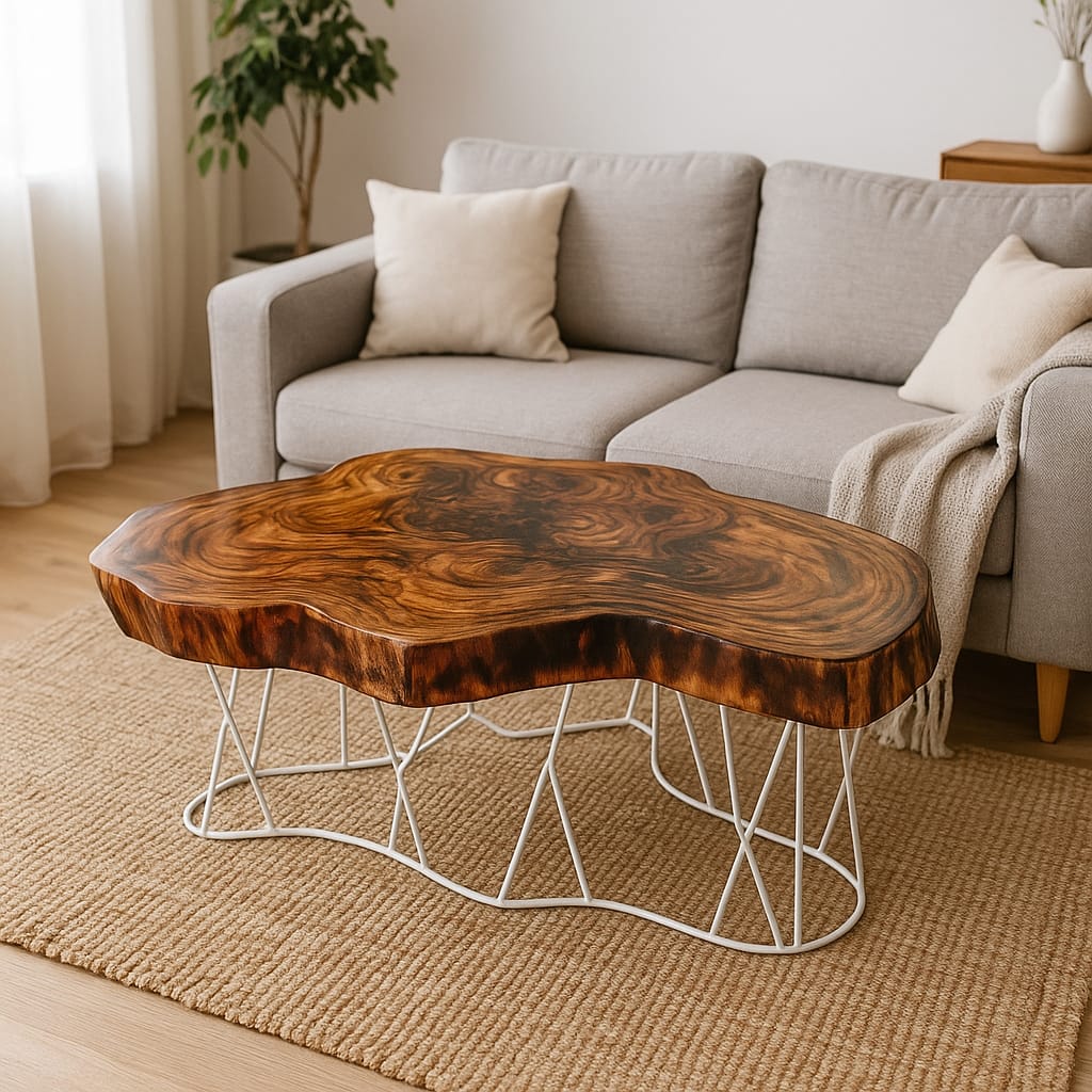 Ovaj jedinstveni klub sto je napravljen od punog drveta, ističući prirodnu lepotu i organski oblik drveta. Čitava površina je zaštićena slojem providne epoxy smole, što pruža izdržljivost i sjajnu završnu obradu.