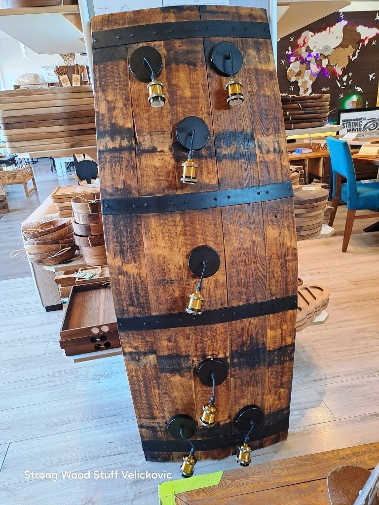 Predstavljamo naše najnovije rešenje za osvetlenje, napravljen od dela hrastovog korišćenog bureta.