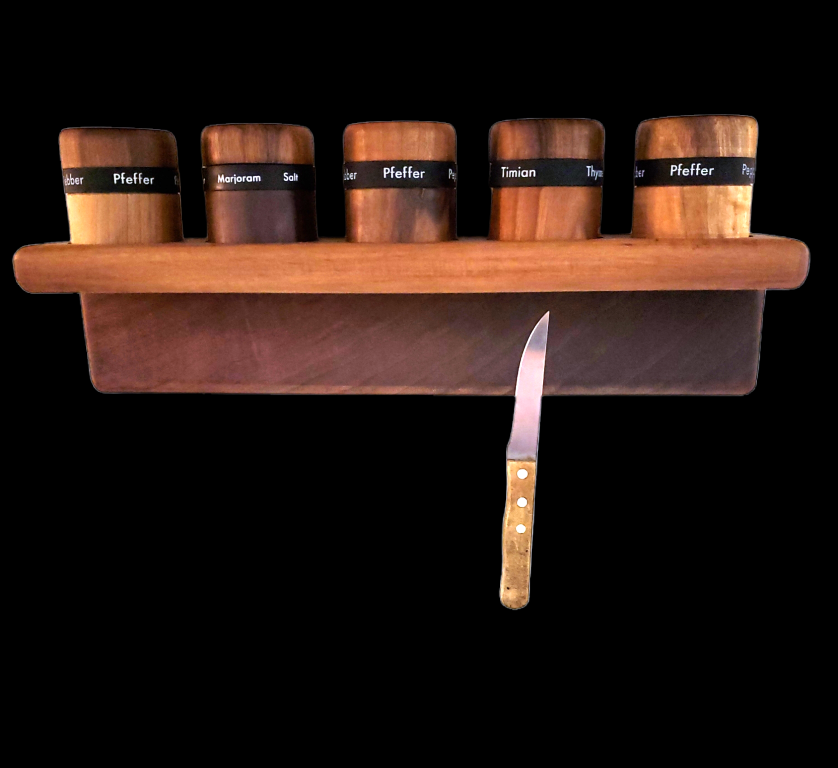 Polica za zacine od termotretiranog oraha/sa skrivenim nodijumskm magnetnima/nosač noževa.Dimenzija: 40x9x9 cm