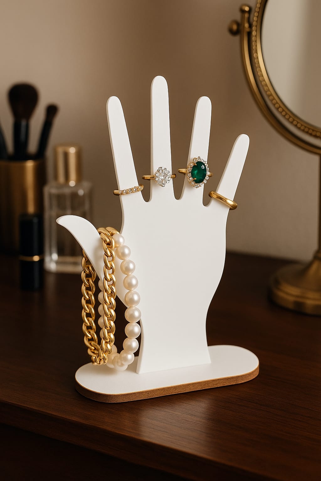 Prsti su savršeni za sigurno držanje prstenja, dok je palac dizajniran za cuvanje narukvica ili prstenja, držeći sve uredno složeno na jednom mestu. Praktičan i dekorativan, ovaj držač za nakit idealan je za vaš toaletni stolić, butik ili kao promišljen poklon.