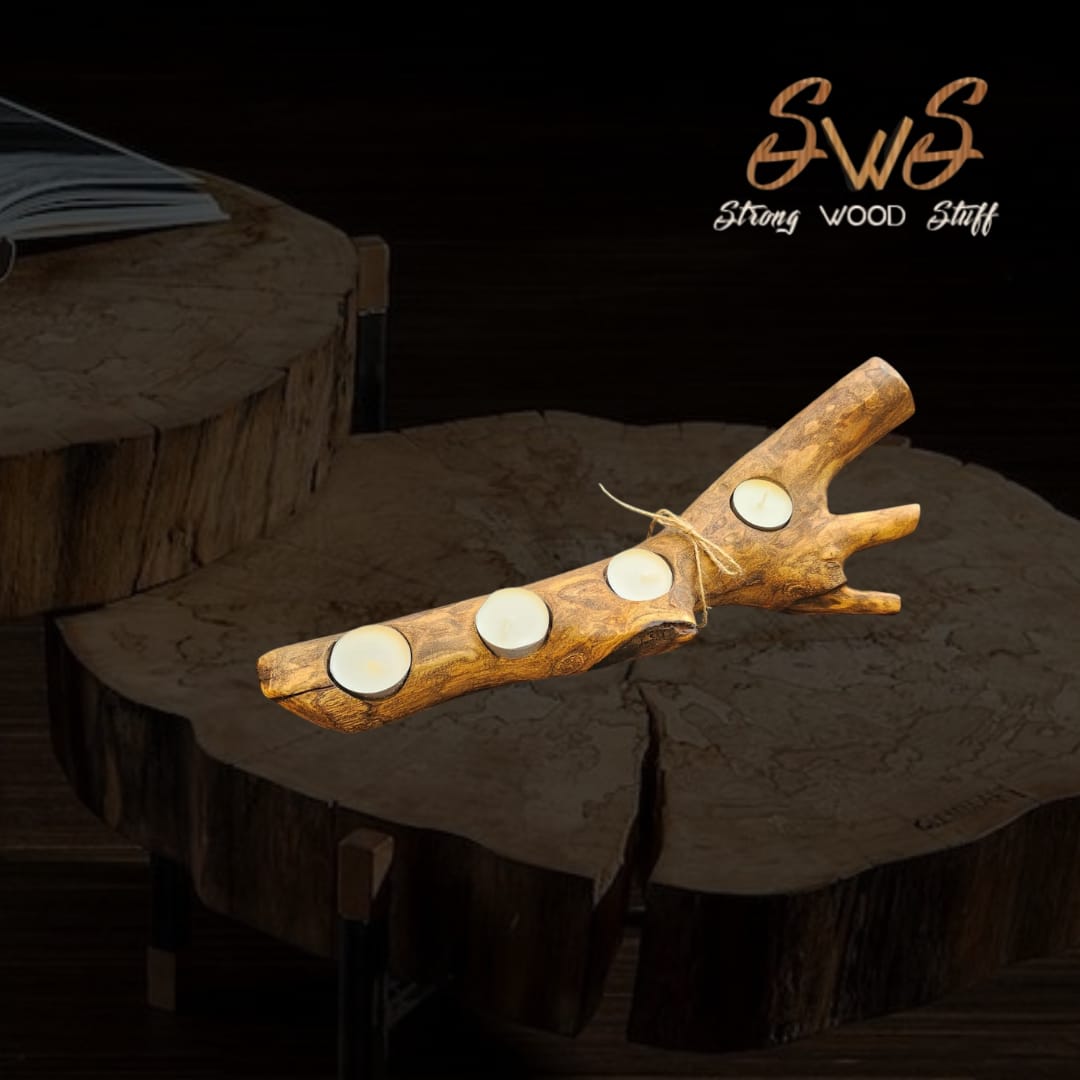 Ovaj jedinstveni svijećnjak izrađen je od prirodnog drveta, oblikovan od grane da unese toplinu i šarm u svaki prostor. Dizajniran da drži četiri čajne svijeće, kombinuje rustikalnu estetiku s funkcionalnom elegancijom. Organsko drvo i prirodna završna obrada čine svaki komad jedinstvenim, idealnim za udoban interijer, posebne prilike ili kao istaknuti dekorativni element.
