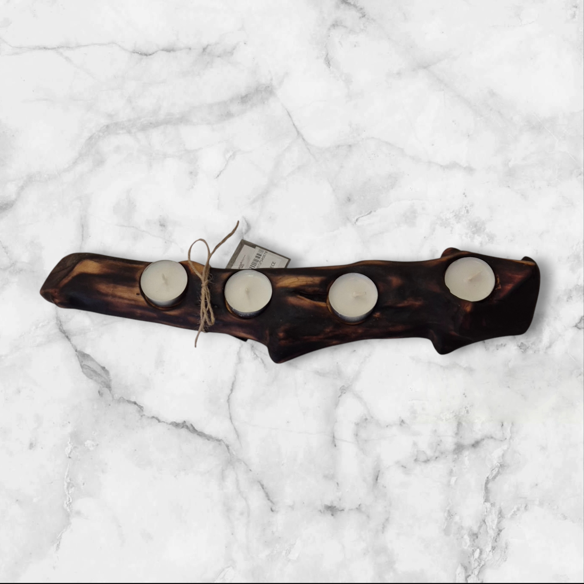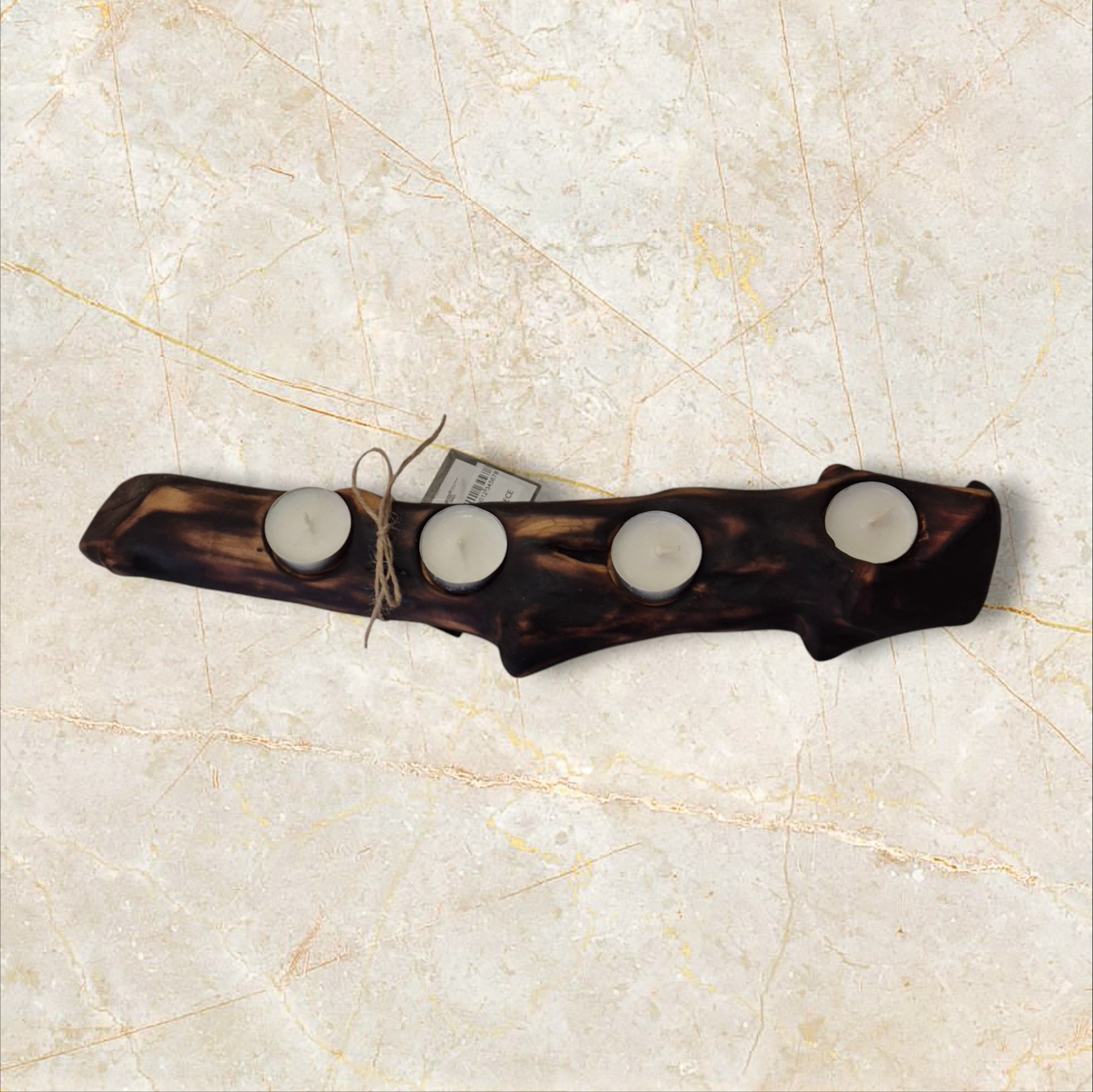 Ovaj jedinstveni svijećnjak izrađen je od prirodnog drveta, oblikovan od grane da unese toplinu i šarm u svaki prostor. Dizajniran da drži četiri čajne svijeće, kombinuje rustikalnu estetiku s funkcionalnom elegancijom. Organsko drvo i prirodna završna obrada čine svaki komad jedinstvenim, idealnim za udoban interijer, posebne prilike ili kao istaknuti dekorativni element.