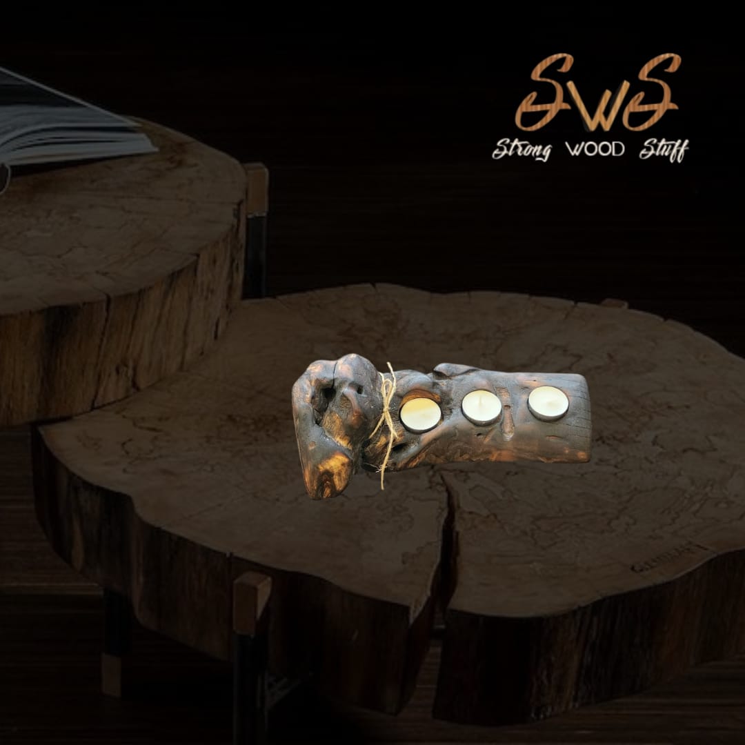 Ovaj jedinstveni svijećnjak izrađen je od prirodnog drveta, oblikovan od grane da unese toplinu i šarm u svaki prostor. Dizajniran da drži tri čajne svijeće, kombinuje rustikalnu estetiku s funkcionalnom elegancijom. Organsko drvo i prirodna završna obrada čine svaki komad jedinstvenim, idealnim za udoban interijer, posebne prilike ili kao istaknuti dekorativni element.