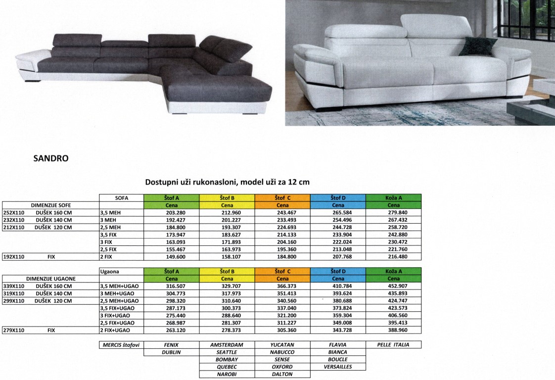 Model SANDRO radi se u vise varijanti kao sofa ili ugaona garnitura u vise dimenzija, sa i bez mehanizma za svakodnevno spavanje.