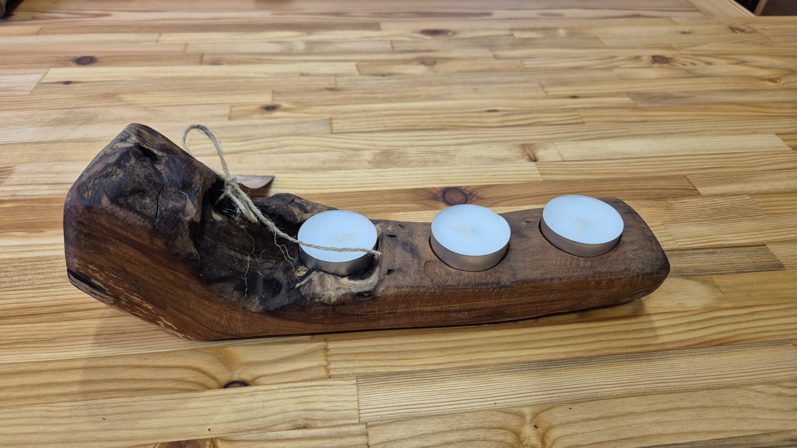 Ovaj jedinstveni svijećnjak izrađen je od prirodnog drveta, oblikovan od grane da unese toplinu i šarm u svaki prostor. Dizajniran da drži četiri čajne svijeće, kombinuje rustikalnu estetiku s funkcionalnom elegancijom. Organsko drvo i prirodna završna obrada čine svaki komad jedinstvenim, idealnim za udoban interijer, posebne prilike ili kao istaknuti dekorativni element.