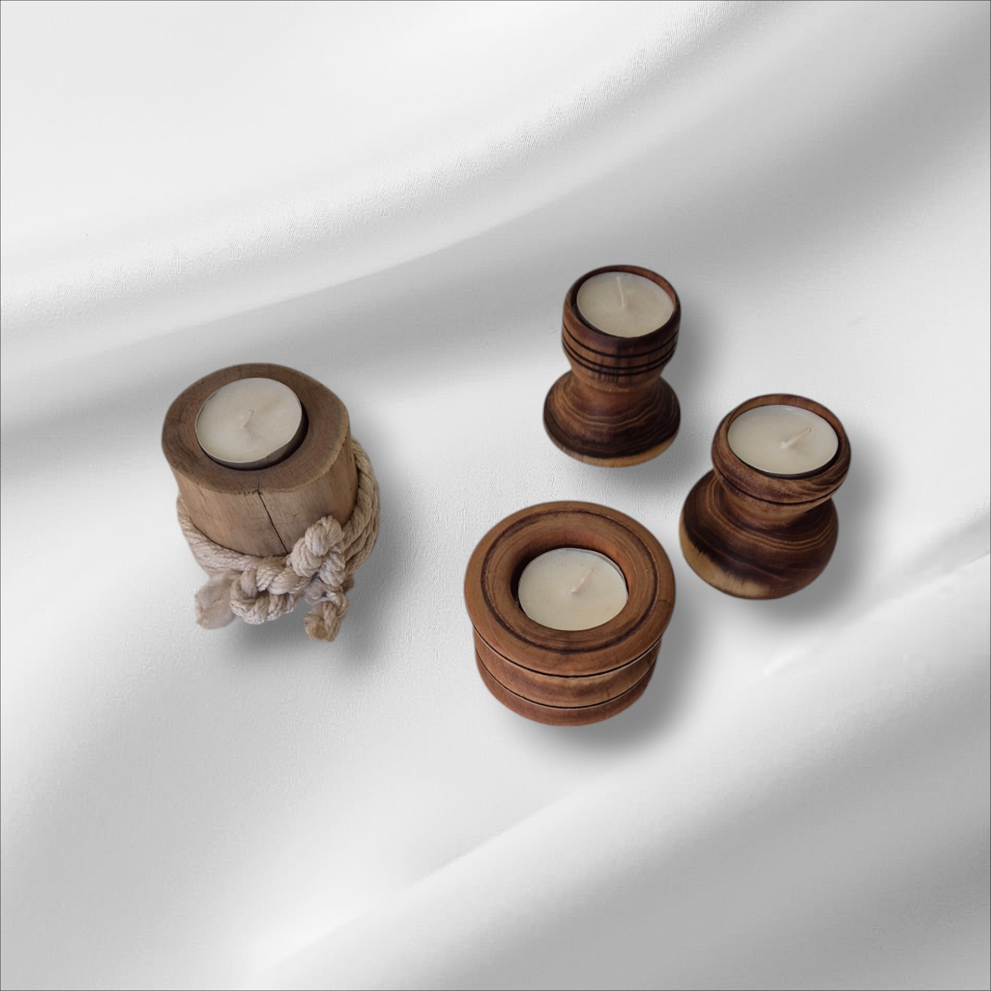 Ovaj jedinstveni svijećnjak izrađen je od prirodnog drveta. Dizajniran da drži jednu čajnu svijeću, kombinuje rustikalnu estetiku s funkcionalnom elegancijom. Organsko drvo i prirodna završna obrada čine svaki komad jedinstvenim, idealnim za udoban interijer, posebne prilike ili kao istaknuti dekorativni element.