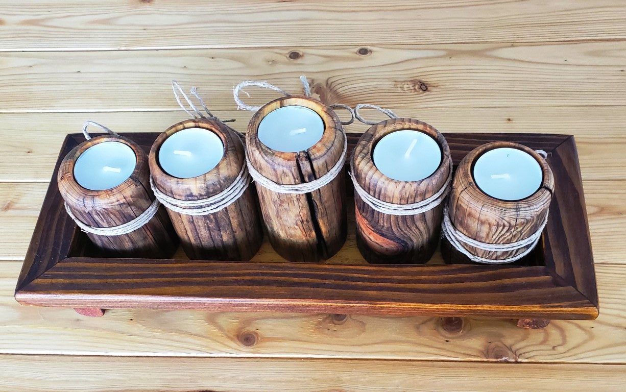 Svećnjak je napravljen od Sibirskog angara bora, što je čvrsto i izdržljivo drvo koje se često koristi za izradu namještaja i drugih dekorativnih predmeta. Dimenzije svećnjaka su 14×36 cm, što je srednja veličina koja se lako može uklopiti u većinu prostora.