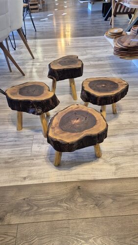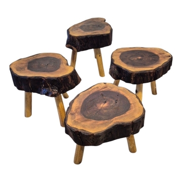 Tronožac etno rustik sedalni deo Orah, noge Bagrem, ručni rad Unikat