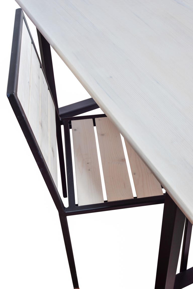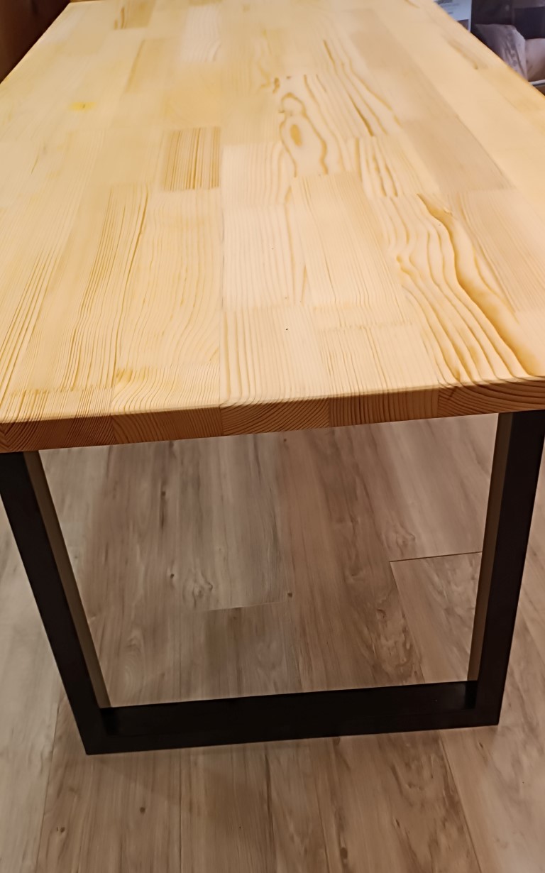 Trpezarijski sto napravljen od lamiliranog drveta Jele i metala.U natur boji ,tretiran prirodnim danskim uljem .Moguce su i druge boje za drvo kao i razlicita velicina stola.